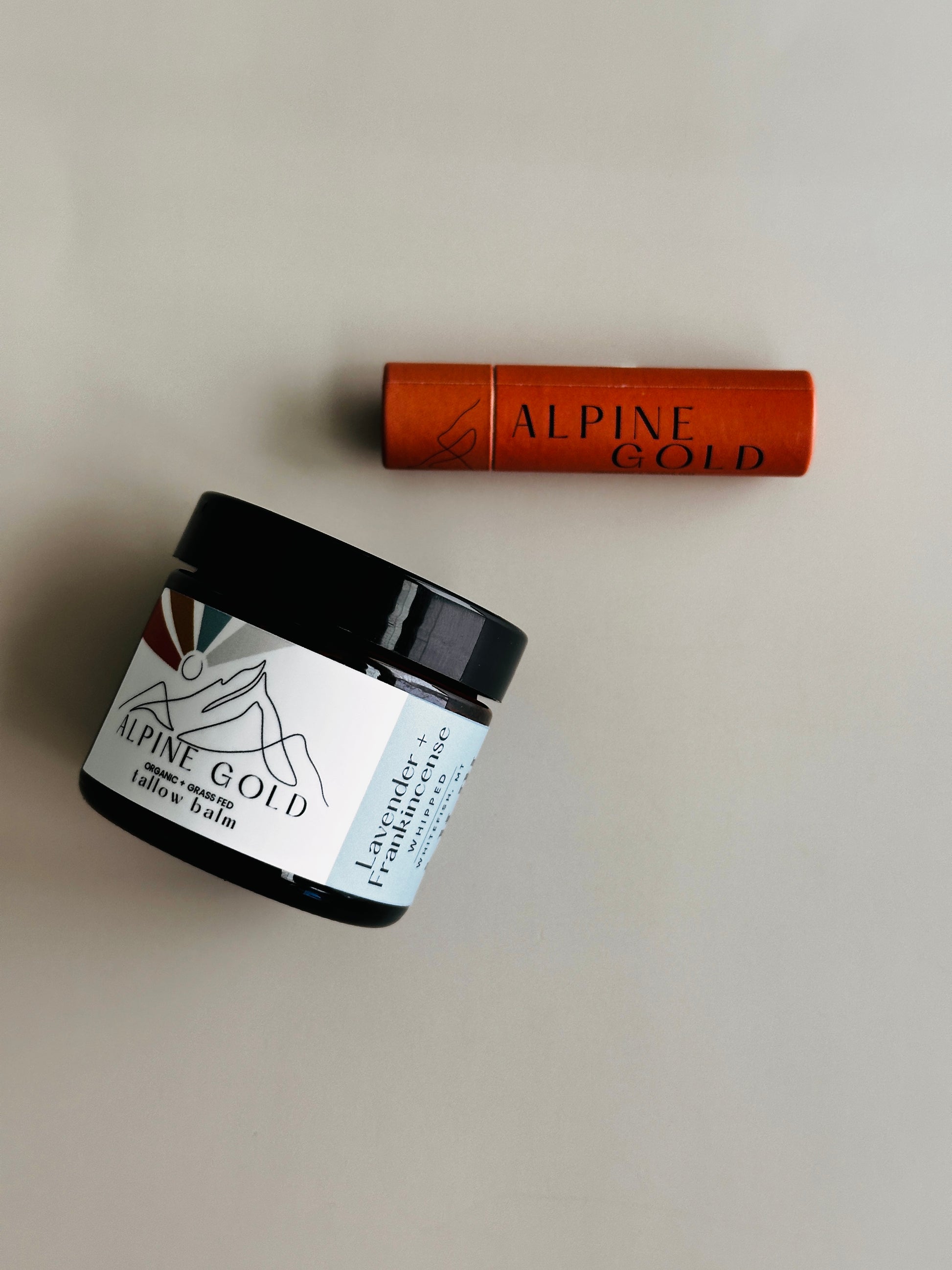 For an unparalleled tallow experience, delve into our exclusive collection. Enjoy one tallow balm, available in your preferred style - original or whipped, paired with a tallow lip balm. Crafted from certified organic, grass-fed beef tallow, our products promise premium quality and natural goodness. Elevate your skincare routine with our luxurious collection, meticulously crafted for indulgent hydration and nourishment.